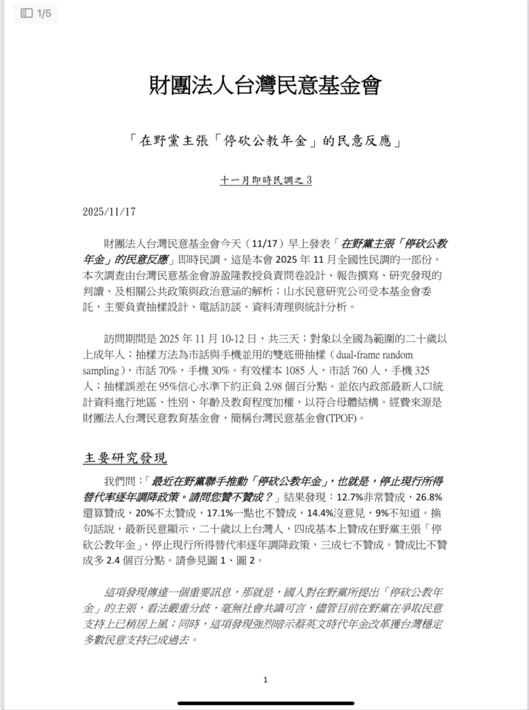 在野黨推動恢復「公投綁大選」的民意反應(2025年11月17日)
