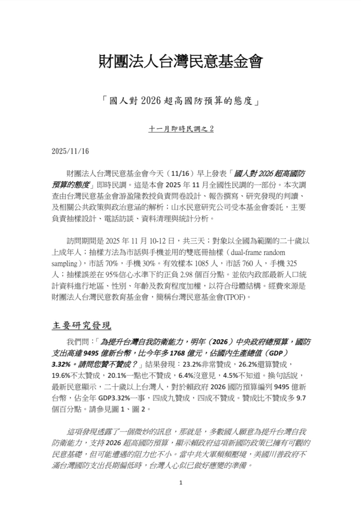 台灣人統獨傾向的最新發展(2025年11月13日)