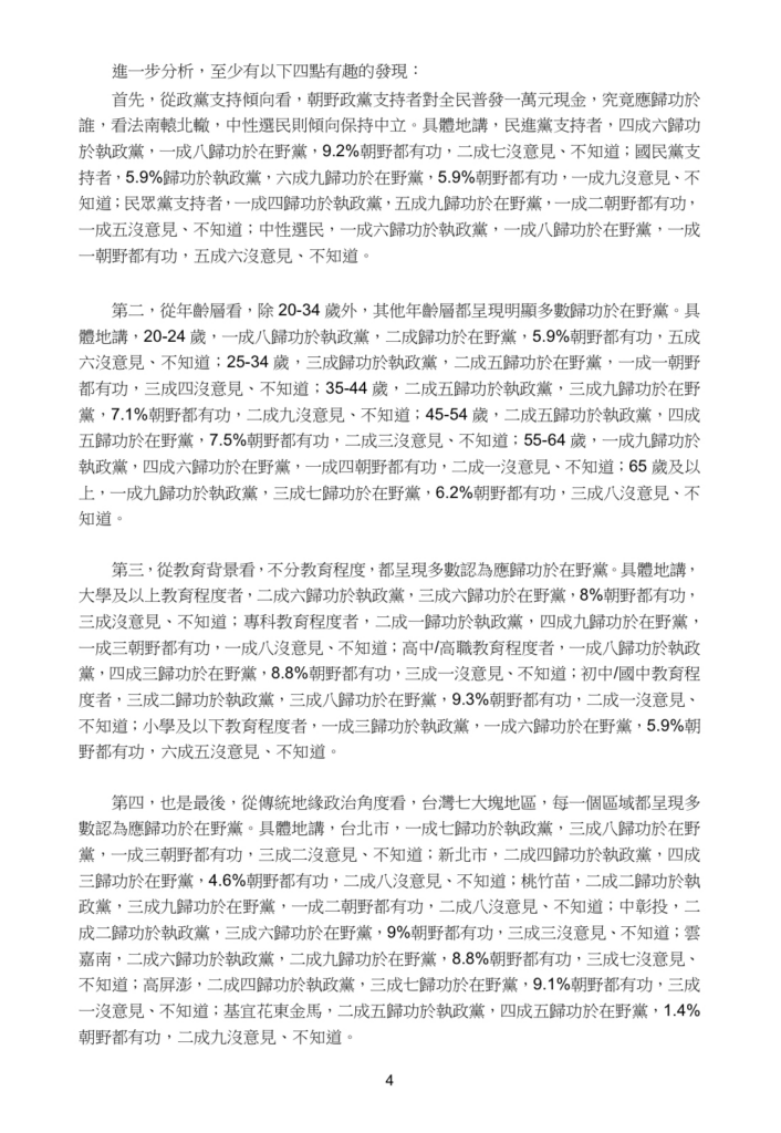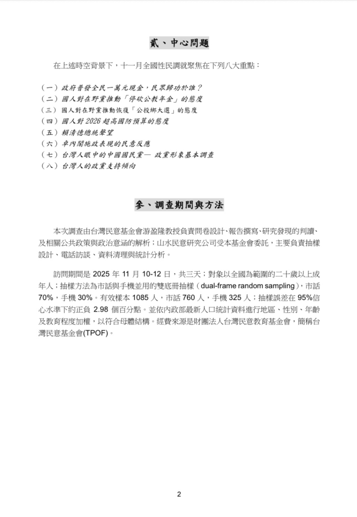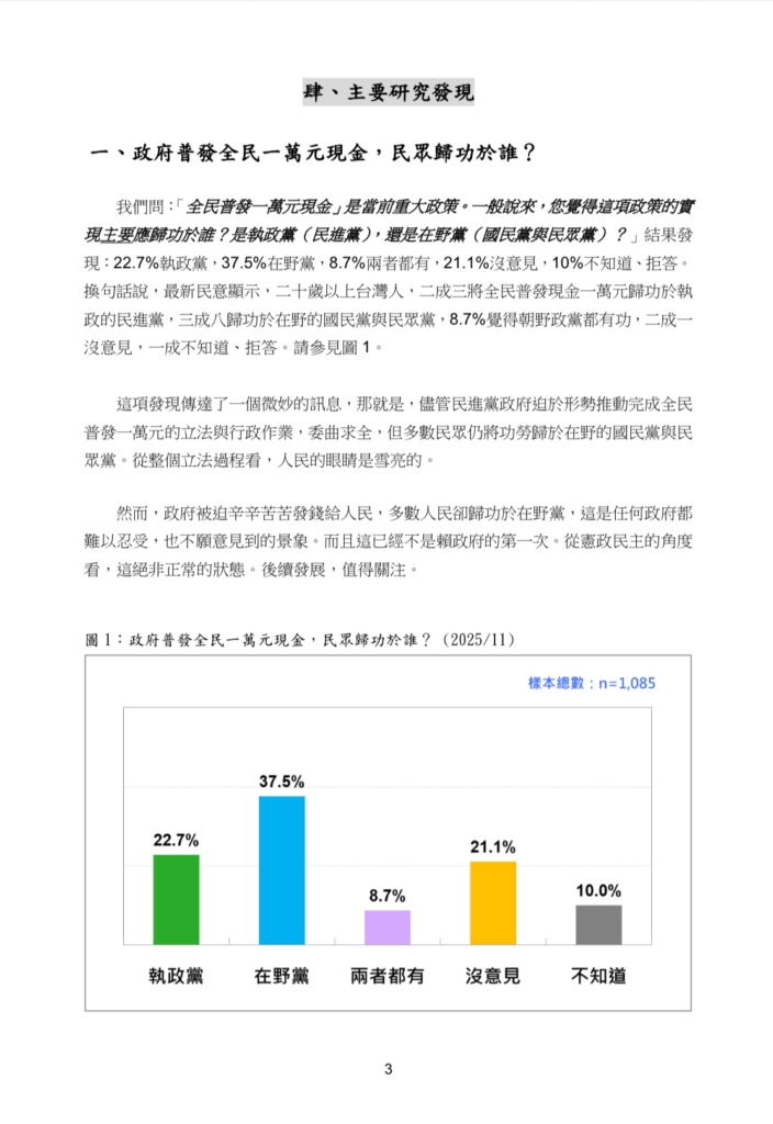 政府普發全民一萬元現金,民眾歸功於誰?(2025年11月14日)