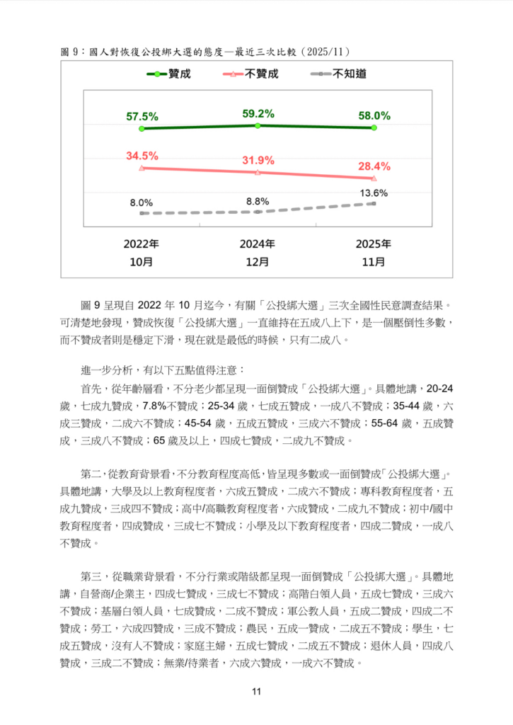 在野黨推動恢復「公投綁大選」的民意反應(2025年11月17日)