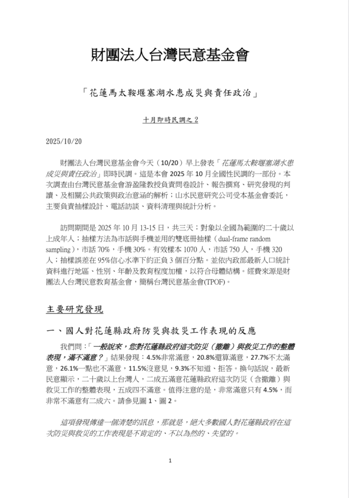 花蓮馬太鞍堰塞湖水患成災與責任政治(2025年10月20日)